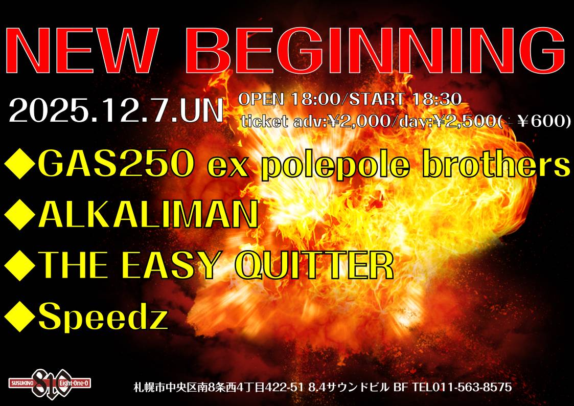 TITLE NEW BEGINNING ARTIST Speedz ALKALIMAN THE EASY QUITTER GAS250 ex polepole brothe DATE 2025.12.